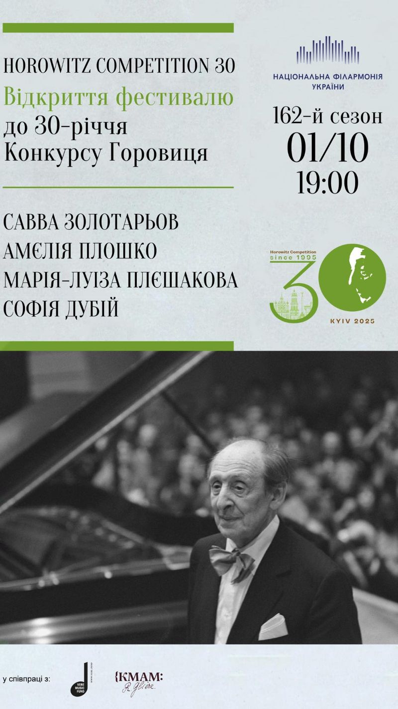 Фестиваль до 30-річчя Конкурсу молодих піаністів пам’яті Володимира Горовиця відбудеться з 1 жовтня по 5 жовтня у Національній філармонії України та VERE MUSIC HUB (Київ, вул. Малопідвальна, 21/8)