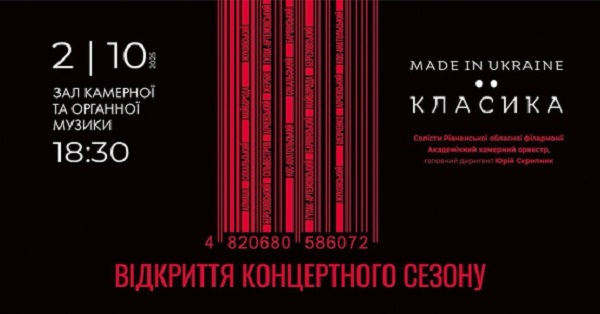 2 жовтня 87-й сезон Рівненської обласної філармонії відкриється програмою, яка звучить як маніфест: «Made in Ukraine: класика»