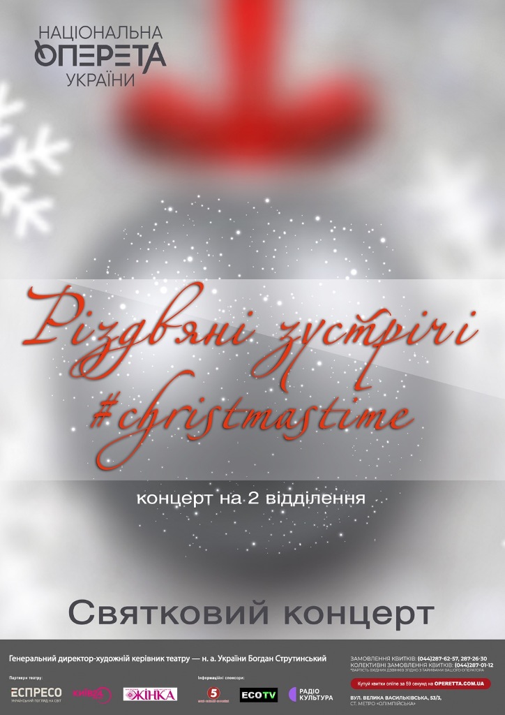 Пориньте у казкову новорічну атмосферу святкових хітів у виконанні артистів та оркестру Національної оперети України.