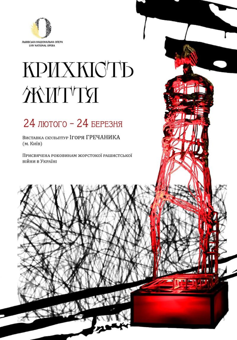 У суботу, 24 лютого, у Львівській національній опері відкриють виставку скульптур «Крихкість життя» сучасного українського митця Ігоря Гречаника та покажуть театралізоване музичне дійство «Псальми війни» Євгена Станковича.
