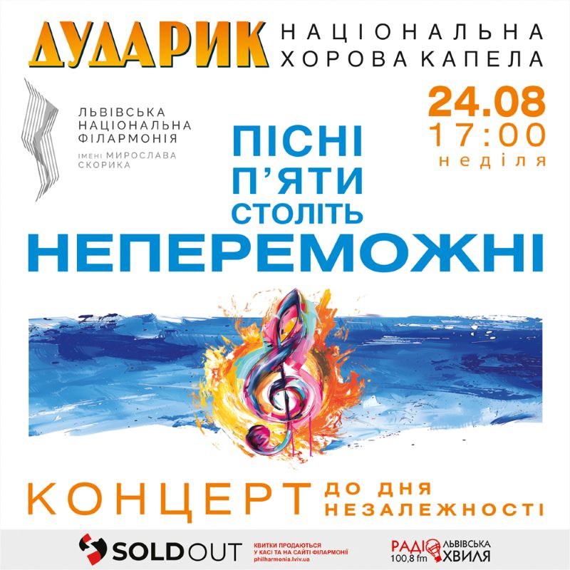У День Незалежності України Національна хорова капела «Дударик» урочисто відкриє свій 55-й концертний сезон програмою «Непереможні». Подія відбудеться 24 серпня у Львівській національній філармонії імені М. Скорика та розпочнеться о 17:00, повідомили у пресслужбі капели «Дударик».