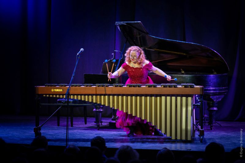 Нині в її виконанні прозвучав твір японської композиторки Кейко Абе «Тамбурін Парафраз» – справжнє театралізоване видовище. Перед нами була немов чаклунка з набором чарівних паличок! І специфічний тембр маримби, і майже циркові чарівні рухи музикантки, і її артистизм – публіка була завойована з перших же звуків.
