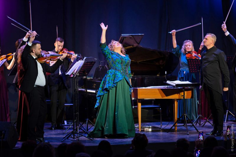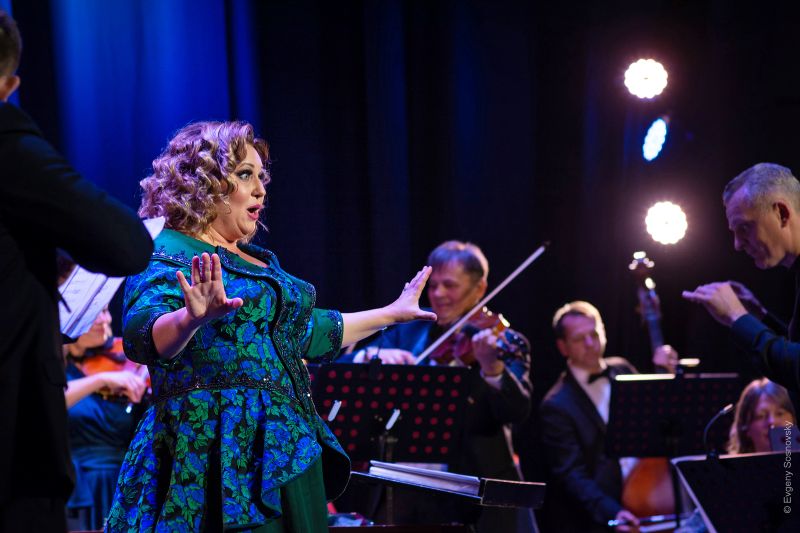 І, нарешті, кульмінація концерту – поява на сцені уславленої української примадонни Людмили Монастирської (до слова, точно знаю кількох фанаток, які опинилися в залі саме заради Сонцесяйної!). Урочистий «Panis Angelicus» Сезара Франка та запальні народні «Чорні Очка», «Ой, заграйте музики!» й «Ой, я знаю, що гріх маю» остаточно підкорили вдячну публіку, яка саме ледве що не пускалася в танець, притупуючи на місцях у такт музики й щораз зриваючись на оплески.