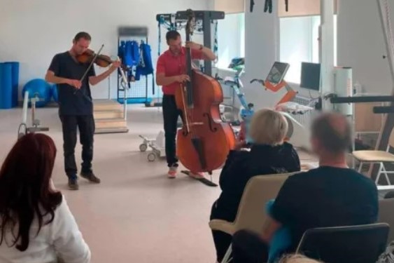 Дует артистів Полтавського академічного симфонічного оркестру у складі Михайла Максимова (контрабас) і Дмитра Голобородова (скрипка) завітали із музичним дарунком до бійців ЗСУ, що проходять реабілітацію, та їхніх лікарів.