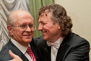 Мабуть один з найсентиментальніших моментів вечора. - гордість Вчителя за перевершуючого Учня: Професор Аллін Власенко та Володимир Сіренко.