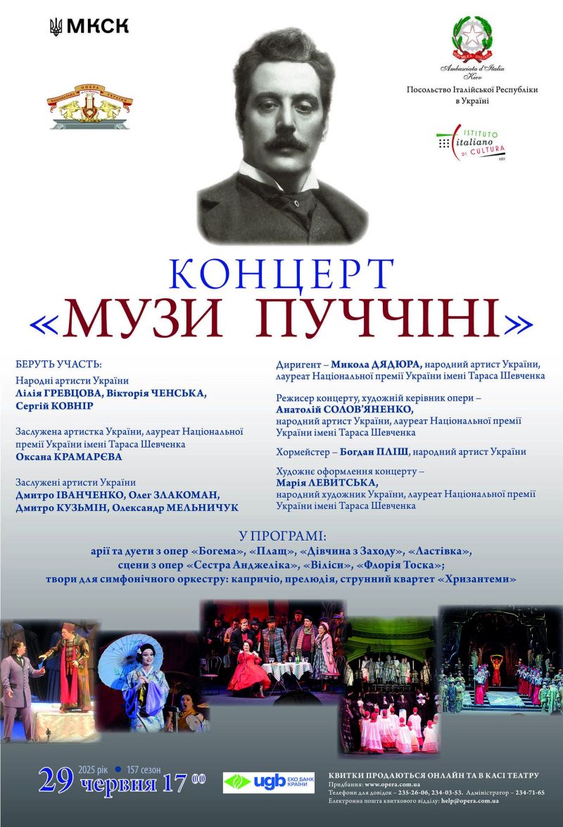 У Національному академічному театрі опери та балету України ім. Т. Г. Шевченка відбувся спеціальний концерт «Музи Пуччіні» за підтримки Посольства Італії в Україні та Італійського інституту культури.