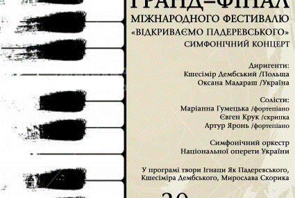 До програми Гранд-фіналу міжнародного фестивалю «Відкриваємо Падеревського» увійшли твори І.Я Падеревського, К.Дембського, М.Скорика.