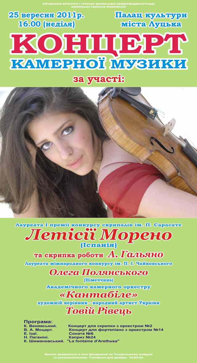 Лауреата I премії конкурсу скрипалів імені П. Сарасате Летісії Морено (Іспанія)