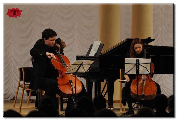Во втором отделении прозвучал порывисто-романтичный Роберт Шуман (три пьесы-фантазии), трогательный Франц Шуберт (экспромт для виолончели и фортепиано, Allegro moderato для трех виолончелей до мажор),