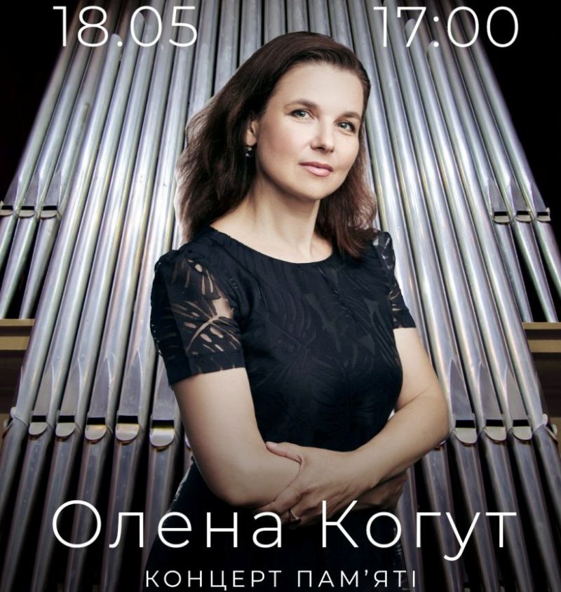 18 травня о 17:00 в Сумській обласній філармонії проведуть концерт, присвячений пам'яті органістки Олени Когут. Вона загинула під час атаки росіян по центральній частині Сум - 13 квітня, на Вербну неділю.
