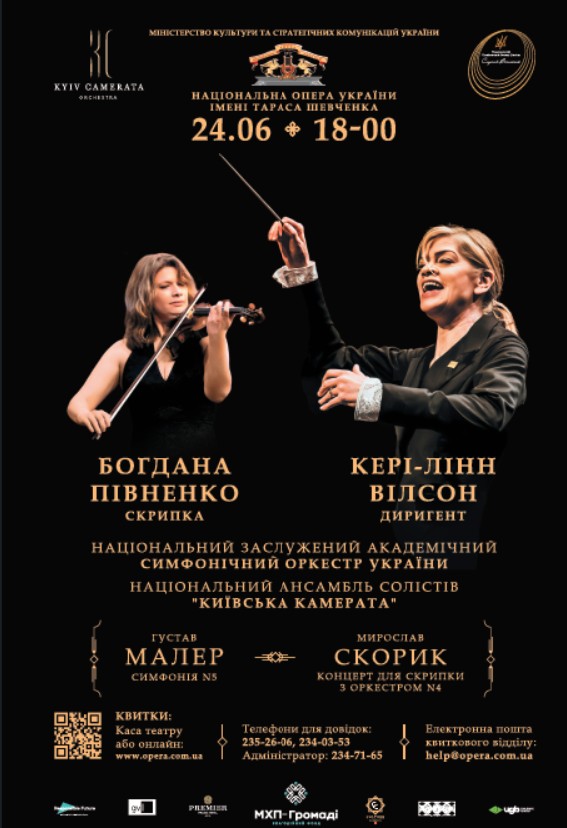 Об’єднає колективи харизматична та всесвітньо визнана канадська диригентка Кері-Лінн Вілсон, яка з травня 2024 року є головною диригенткою «Київської камерати». У програмі вечора виконавці презентуватимуть два шедеври світової класики – Симфонію № 5 австрійського генія Густава Малера та яскравий Концерт для скрипки з оркестром № 4 видатного українського метра Мирослава Скорика.
