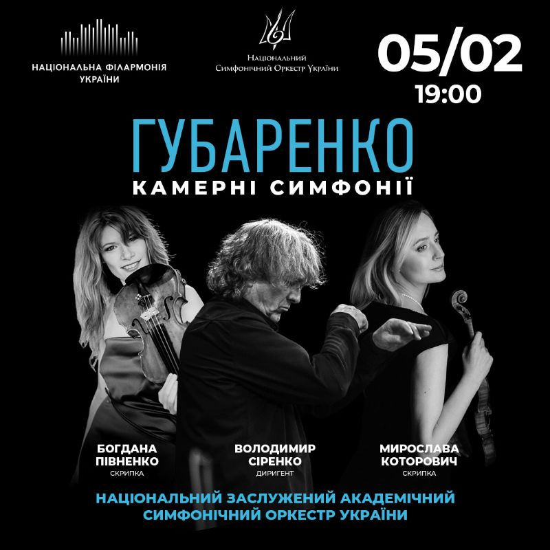 під орудою Маестро Володимира Сіренка звучатимуть Камерні симфонії українського композитора Віталія Губаренка. Більше знаний як оперний композитор, він має у своєму творчому доробку чимало симфонічних творів. Це – справжні перлини лірики та полум’яності, які збудовані на взаємодії усіх складових музичної тканини, ніби це оперні герої, котрі співчувають, хвилюються та радіють разом. Камерні симфонії Губаренка – відносно невеликі за тривалістю композиції, написані для оркестру та солюючого інструмента. У кожній симфонії соліст, немов герой у навколишньому світі, що переживає свої драми. Цього вечора ними стануть блискучі скрипальки Богдана Півненко та Мирослава Которович. Окрім такого ліричного налаштування, симфонії дозволяють продемонструвати неабияку виконавську майстерність музикантів. Три камерні симфонії Губаренка доповнить симфонічна поема Ріхарда Штрауса «Смерть і просвітлення». Написана композитором у віці 24 років, вона побудована на його розмислах про наповненість життя.