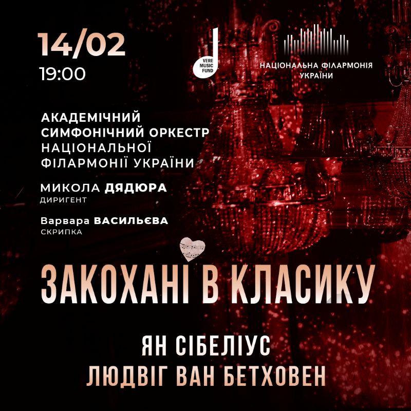 14 лютого «Закохані в класику» – Симфонічний оркестр НФУ під орудою Маестро Миколи Дядюри та солістка Варвара Васильєва, скрипка, – зіграють блискучу програму для усіх закоханих! Четверту симфонію Бетховена та Скрипковий концерт Сибеліуса у написанні відділяє 100 років. Один твір належить до класичної стилістики, інший – до пізньоромантичної. В одному – ясність та піднесеність, в іншому – схвильованість та мрійливість. Але ці твори об’єднує те, що за своє довге концертне життя вони стали класикою, яка формує репертуари будь-якого оркестру.