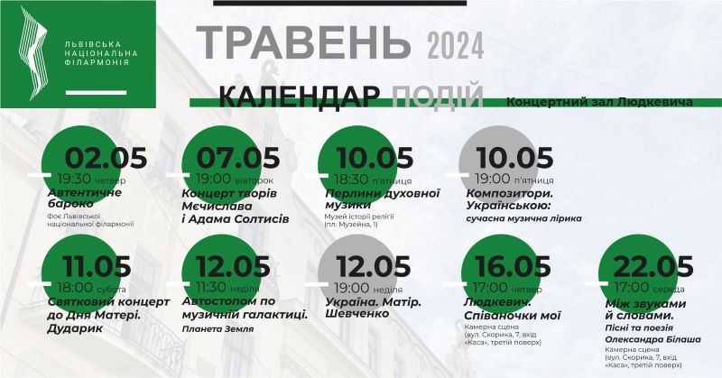 В очікуванні наймасштабнішого фестивалю класичної музики у Львові – 43 фестивалю “Віртуози”, філармонія представляє також вісім музичних вечорів різних напрямків, щоб ще раз запросити слухачів до затишної концертної зали імені Станіслава Людкевича.