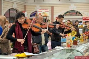 Артисты же то прохаживались около по рыбному ряду, то останавливались около фасованных соусов. И приняв выгодную позу, продолжали невозмутимо играть классику в окружении свежей говядины и замороженного куриного филе.