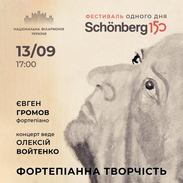 Тож, 13.09 о 17:00 в Музичному салоні НФУ – фортепіанна творчість Шенберґа у виконанні київського піаніста Євгена Громова з модерацією композитора та музикознавця Олексія Войтенка.