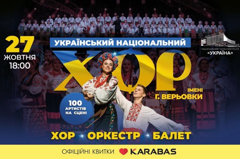 27 жовтня на гостей події очікує неповторна атмосфера, бездоганний спів, запальні танці та віртуозний оркестр і звісно ж – українські пісні. І все це у виконанні 100 артистів Хору Верьовки.