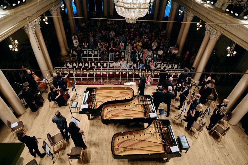 Любите фортепіанну музику? Ось вам твори для трьох фортепіано відразу. А якщо додати до оригінального музичного «меню» ще й першокласних солістів, то відмовитись від такої учти практично неможливо.