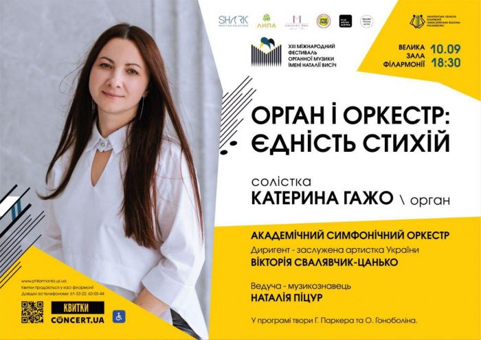 Програму цьогорічного фестивалю відкриє концерт "Орган і оркестр: єдність стихій", який для шанувальників музики готують господарі сцени - солістка філармонії Катерина Гажо й Академічний симфонічний оркестр під орудою заслуженої артистки України Вікторії Свалявчик-Цанько.