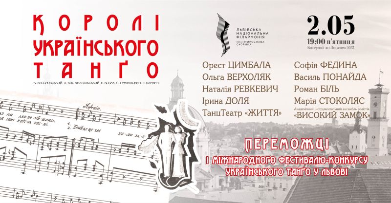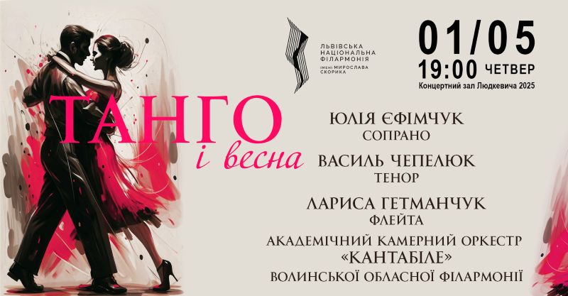 На початку травня Львівська національна філармонія запрошує глядачів на два непересічні концерти, присвячені музиці, яка завжди хвилює серце – танго. Два вечори — дві сторони однієї пристрасної історії.
