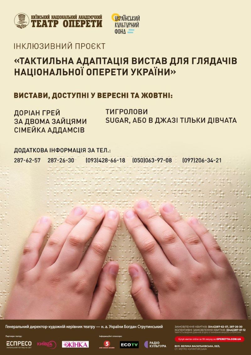 - Велика вдячність всім, хто підтримав цей інклюзивний проєкт. Наш театр сповідує цінності рівних можливостей та став першим закладом у Києві, який реалізував доступні вистави для відвідувачів із порушенням зору,- зазначив Богдан СТРУТИНСЬКИЙ, генеральний директор - художній керівник Національної оперети України. -Інклюзія в театральному середовищі полягає у тому, що люди, і особливо, діти не можуть бути ізольованими від культурної сфери через особливості розвитку чи інвалідність.