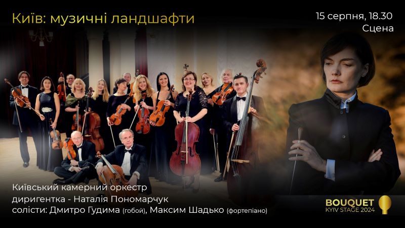 15 серпня Київський камерний оркестр під орудою маестро Наталія Пономарчук відкриває у Софії Київській головну сцену сьомого щорічного фестивалю високого мистецтва Bouquet Kyiv Stage 2024, що є своєрідним вітальним жестом митцям з різних українських міст, які представлені на фестивалі цьогоріч.