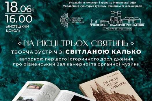 "На місці трьох святинь" - таку назву має видання, яке стало першим ґрунтовним дослідженням про історію будівлі Зали камерної та органної музики. Його авторка - рівненська краєзнавиця та журналістка Світлана Калько.
