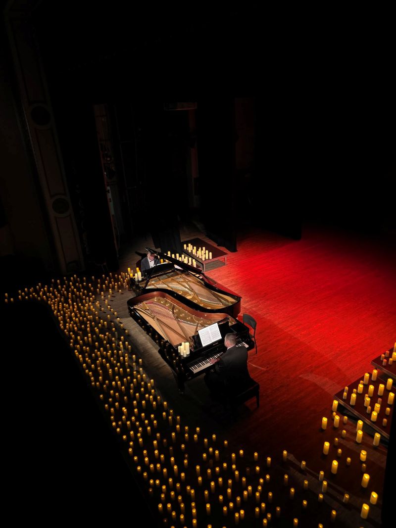 Цього разу ми вирішили масштабувати формат та додати несподіваних елементів, але сама ідея, як це часто буває, народилася спонтанно. Під час обговорення планів фортепіанного вечора при свічках прозвучала думка: а чи не залучити до нього одразу двох солістів? Наш директор Тарас Малик напівжартома відповів, що ми можемо не тільки двох солістів залучити, а й два роялі. До речі, ми справді пишаємося тим, що філармонія має справжній скарб: одразу два концертні роялі преміум-класу – Steinway & Sons та Bechstein. От саме так, з його легкої руки з’явився концерт «Два роялі при свічках».