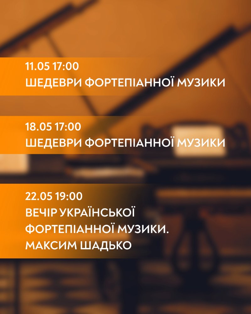 22 травня о 19:00 – Вечір української фортепіанної музики. Виконує: Максим Шадько.