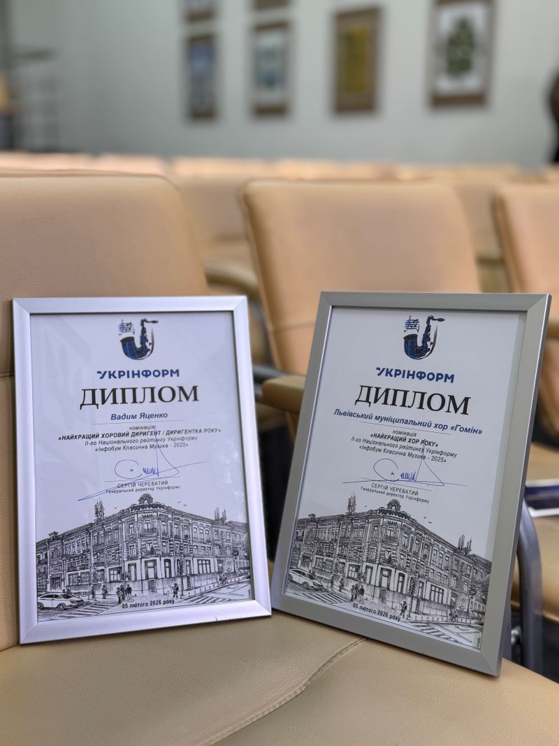 Хор "Гомін" Львівського органного залу визнано найкращим хором України 2025 року, а його керівник Вадим Яценко – найкращим хоровим дириґентом року
