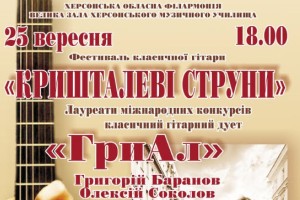 25-26 вересня Херсонська філармонія вперше проведе фестиваль класичної гітари в якому візьмуть участь провідні майстри гри на класичній гітарі з Росії - лауреати міжнародних конкурсів професор Євген Фінкільнштейн (гітара), Андрій Чернишов (лютня барочна гітара вокал) та гітарний дует "Гриал" (Олексій Соколов та Григорій Баранов)