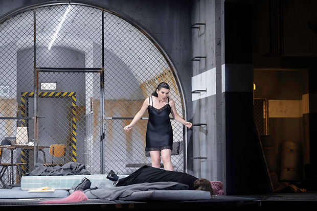 Але знову риторичне питання до режисера: чому люди у бомбосховищі, поєднані однією бідою, мають розділитися на жертв і насильників? Навіть в межах однієї сім’ї. Адже Корнелія демонструє в бункері еротичну гру, спрямовану на рідного сина. В барокових операх (і не лише) інцестуальні і трансґендерні мотиви – не рідкість, але навіщо вони у контексті опери «Юлій Цезар», перенесеної у часи сучасної війни? Зрозуміло, що Корнелія робить власного сина інструментом помсти за вбивство чоловіка Помпея (його труп перебуває на сцені досить довго як доказ брутальної гри Птоломея з Цезарем у бункері). Корнелія, як і всі інші з’являється у бомбосховищі в красивому outfit, очевидно пов’язаному з її високим соціальним статусом. Цезар і Корнелія на вигляд – бізнес-боси. Корнелія дозволяє собі лише короткий момент скорботи над тілом вбитого чоловіка, потім відразу показово впорядковує зачіску, макіяж, костюм.