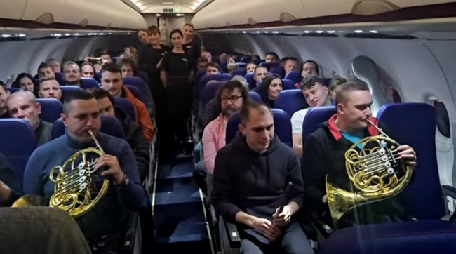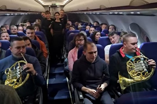 Національний одеський філармонічний оркестр зіграв у літаку, на якому музики та їхній художній керівник Хобарт Ерл вирушили у тур в Італію.