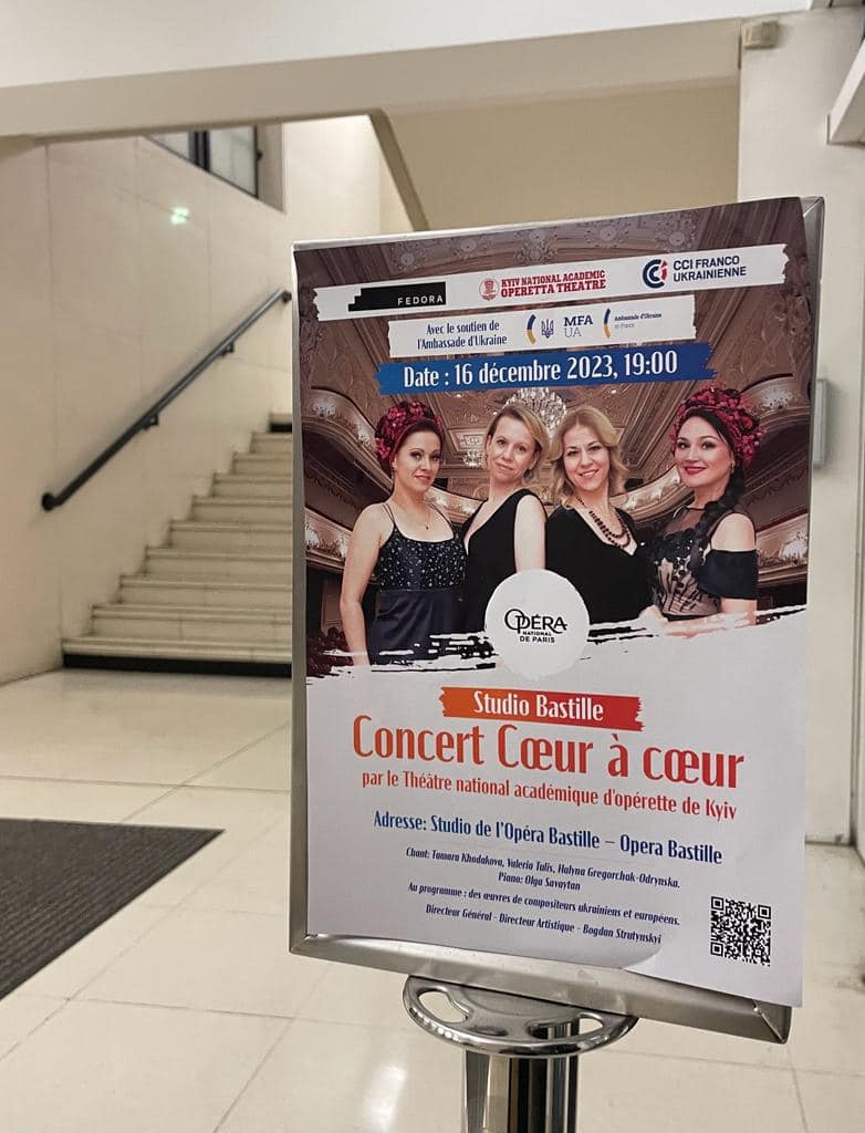 В Studio de l’Opéra Bastille (Париж) відбувся благодійний концерт «Від серця до серця», в якому взяли участь солістки Національної оперети України.
