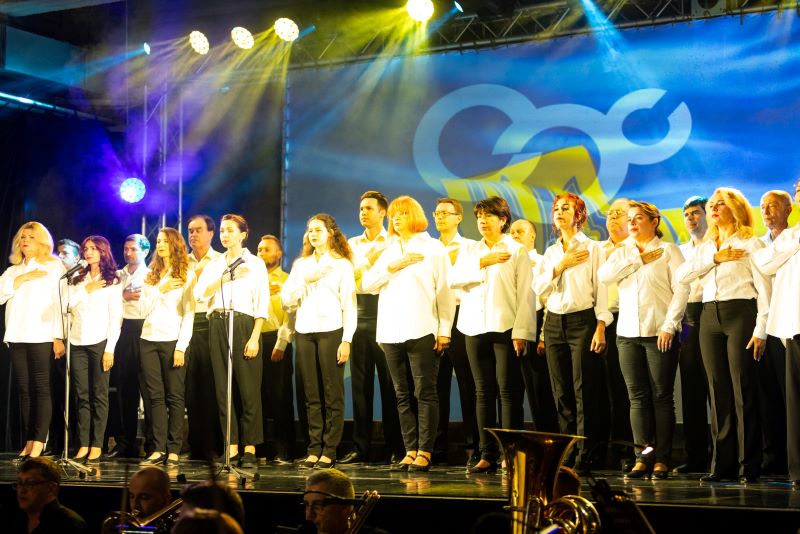 Концерт відкрили урочисто — виконанням Державного Гімну України. Хор під керівництвом заслуженого діяча мистецтв України Олексія Чернікіна і симфонічний оркестр Схід Опера, під управлінням заслуженого діяча мистецтв України, маестро Дмитро Морозов виконали Гімн разом із глядачами.