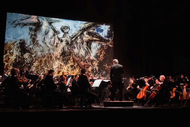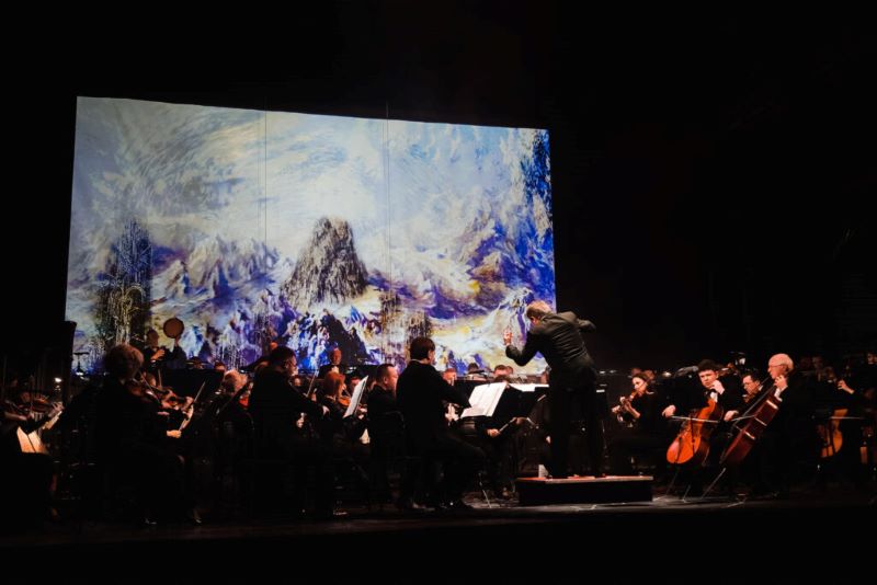 Масштабні творчі роботи Євгена Лисика “оживуть” завдяки вражаючій 3D-проєкції та світловим ефектам. Вони наповняться багатогранним звучанням оркестру, тоді як симфонічні твори збагатяться емоцією, барвою та кольором картин художника.
