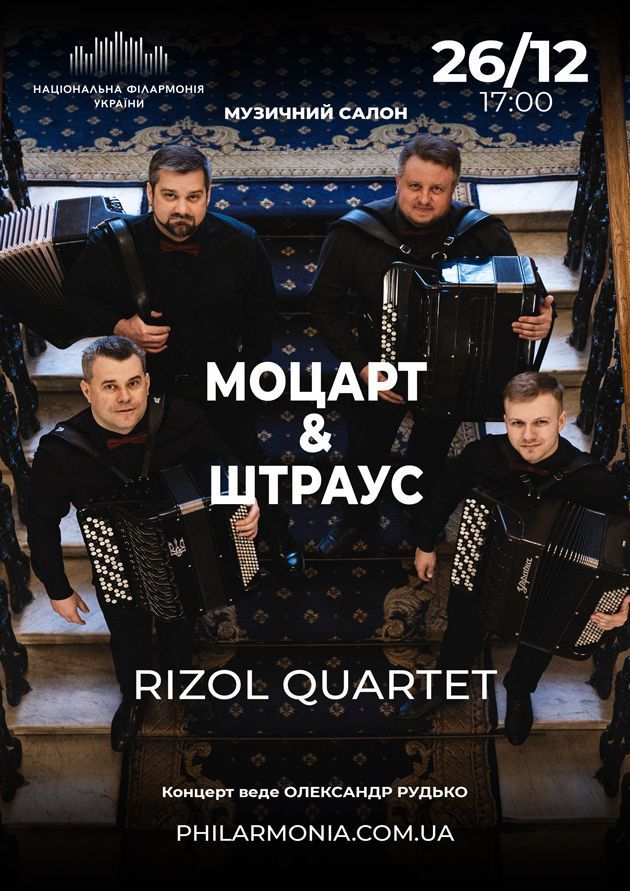 26 грудня у програмі Моцарт & Штраус легендарний та улюблений багатьма Rizol Quartet – висвітлить творчість двох геніальних австрійських композиторів-класиків: Вольфганга Амадея Моцарта та Йоганна Штрауса. Програма дуже атмосферна й здатна розбудити у слухачів багатий спектр щасливих емоцій: від глибинних роздумів над суттю буття до захоплення грайливими житейськими ситуаціями чи простої радості від мрійливих уявних споглядань європейських краєвидів.