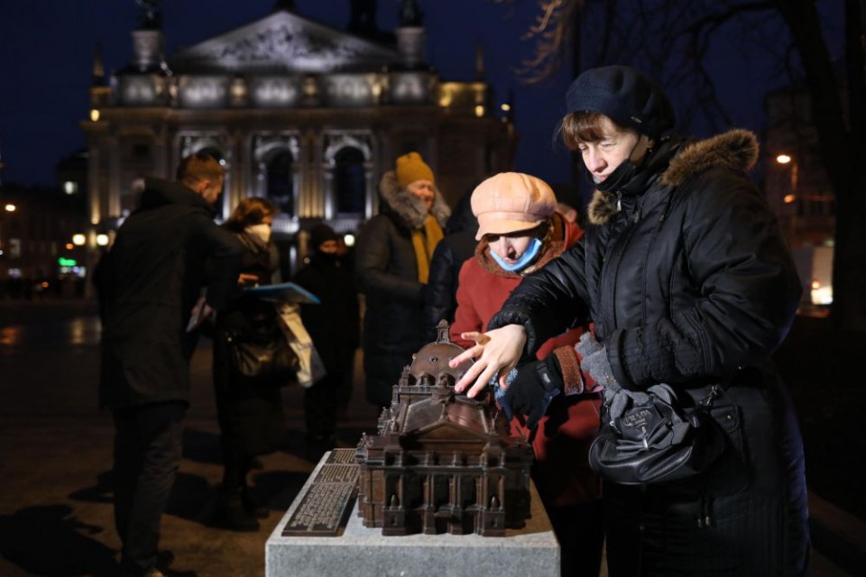 Надзвичайно важливо, що Львівську оперу відтепер можна побачити й… дотиком – на площі перед театром встановлена бронзова мініатюра-копія театру спеціально для людей з вадами зору, з таблицею шрифтом Брайля. Модель виготовив скульптор Василь Одрехівський з ініціативи Львівської міської ради та керівника обласного осередку ВГО «Українська спілка інвалідів – УСІ» Оксани Потимко.