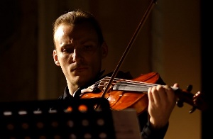 Ігор Завгородній, 33 роки, - скрипаль, альтист, композитор, мульти-інструменталіст - розпочав камерний вечір сольно, музикою Й.С Баха: «Віолончельну сюїту Баха 5 до-мінор BWV 1011 сьогодні я публічно грав вперше – на альті, і з урахуванням позначок автора щодо строю інструмента у скордатурі, власне як Бах її і написав (верхня струна «ля» перелаштовується на тон нижче).