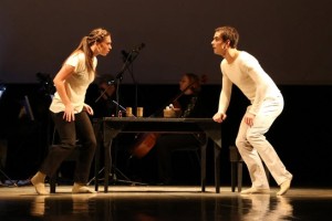 Диригент Сергій Голубничий не просто зібрав п’ятьох артистів оркестру Муніципальної опери (Ольга Лепко, Клавдія Штейнберг, Геннадій Канаєв, Ірина Яковченко, Катерина Купцова), а створив міні-оркестр, здатний складне зробити зрозумілим, форте і піано, мажор і мінор — інтонаціями дії, а темпоритм музики — сюжетно-драматичним пульсом вистави. Скупа сценографія — стіл і дві табуретки ефектно була доповнена відеосюжетами (відеорежисура та проекція — Марія Пустовалова та Дмитро Діордійчук), немов герої гортали свій сімейний фотоальбом і хотіли зрозуміти, чому ж вони не вберегли своє кохання? Стосунки чоловіка і жінки, як пори року, мінливі, незбагненні і непередбачувані.
