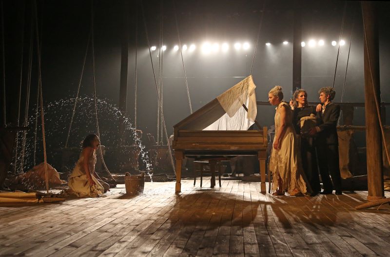 Кольорова гамма перевернута догори дриґом, але й сцена, яка нависає над глядацьким залом, наче палуба нахиленого на морській хвилі корабля, корабля, який чекає на бурю, що розтрощить його не на тріски, а на самі атоми. І глядачі відчувають рух цього корабля, хоча сцена мертво статична, немає ніяких потаємних механізмів, щоб створювали ілюзію морської хитанини, але публіку не полишає відчуття, що не лише актори, а й глядачі - всі на палубі...