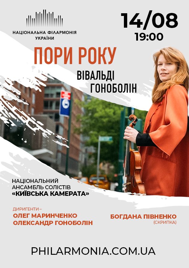 Одним із найвідоміших шедеврів епохи бароко є знаменитий цикл для скрипки з оркестром «Пори року» Антоніо Вівальді. Національний ансамбль солістів «Київська камерата» й солістка Богдана Півненко виконають в одному концерті «Пори роки» Вівальді й сучасного українського композитора Олександра Гоноболіна.