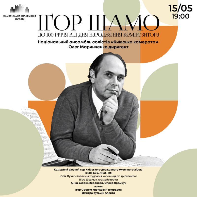 До 100-річчя від дня народження Ігоря Шамо15 травня у Національній філармонії України відбудеться ексклюзивний концерт пам’яті видатного композитора, народного артиста України, лауреата Національної премії України імені Тараса Шевченка Ігоря Шамо.