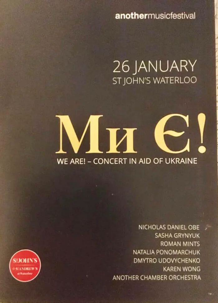 Концерт української музики, що відбувся в церкві St. John’s Waterloo, розпочався зі скорботного реквієму за розстріляними під час Майдану 1914, що став наче провісником початку жорстокої війни – з жалобної народної мелодії «Пливе кача».