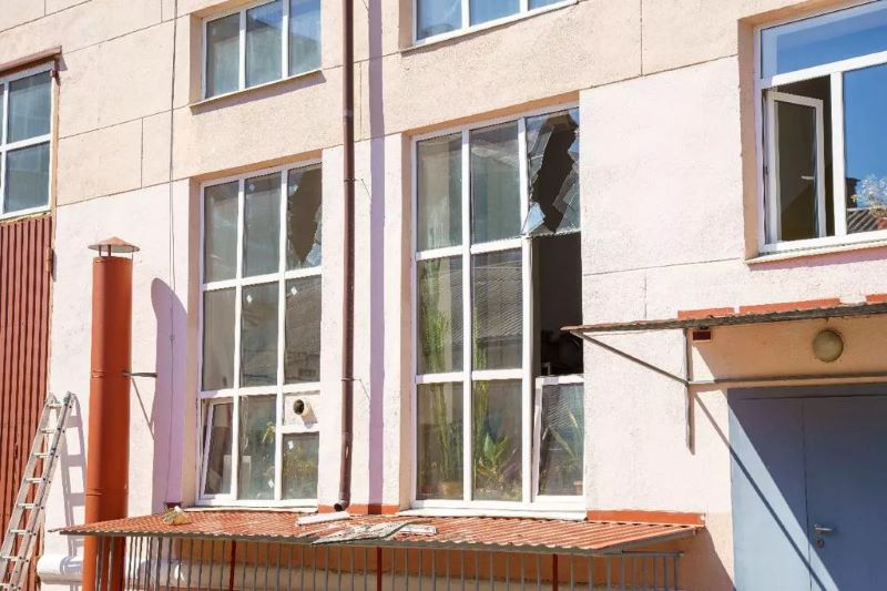 У деяких приміщеннях вибуховою хвилею вибило скло та пошкодило віконні рами. При цьому бетонні та опорні елементи будівлі були без значних руйнувань.