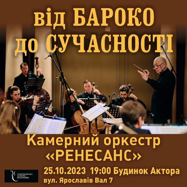 25 жовтня у Будинку Актора відбудеться концерт Камерного оркестру «Ренесанс» Маріупольської камерної філармонії (Київ) під керівництвом Маестро Василя Крячка