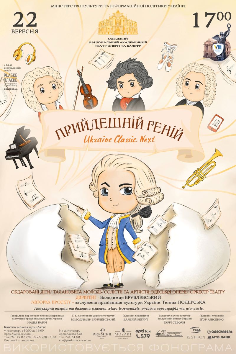 На завершення «Оксамитового сезону» на глядачів чекає непересічна прем’єра. Це гала-імпреза «Прийдешній геній. Ukraine Classic. Next», яка відбудеться 22 вересня.