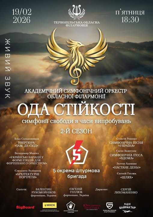 У Тернополі відбудеться концерт національного благодійного проєкту "Ода стійкості - симфонії свободи у часи випробувань" - 19 лютого.