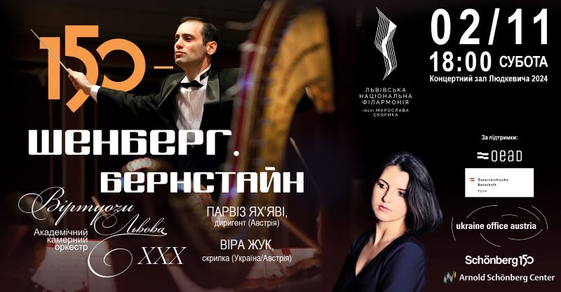 2 листопада о 18:00 у Львівській національній філармонії імені Мирослава Скорика Віра Жук разом з Академічним камерним оркестром «Віртуози Львова» та диригентом Парвізом Яхʼяві представлять програму до 150-річчя від дня народження світоча європейського модернізму – Арнольда Шенберга.
