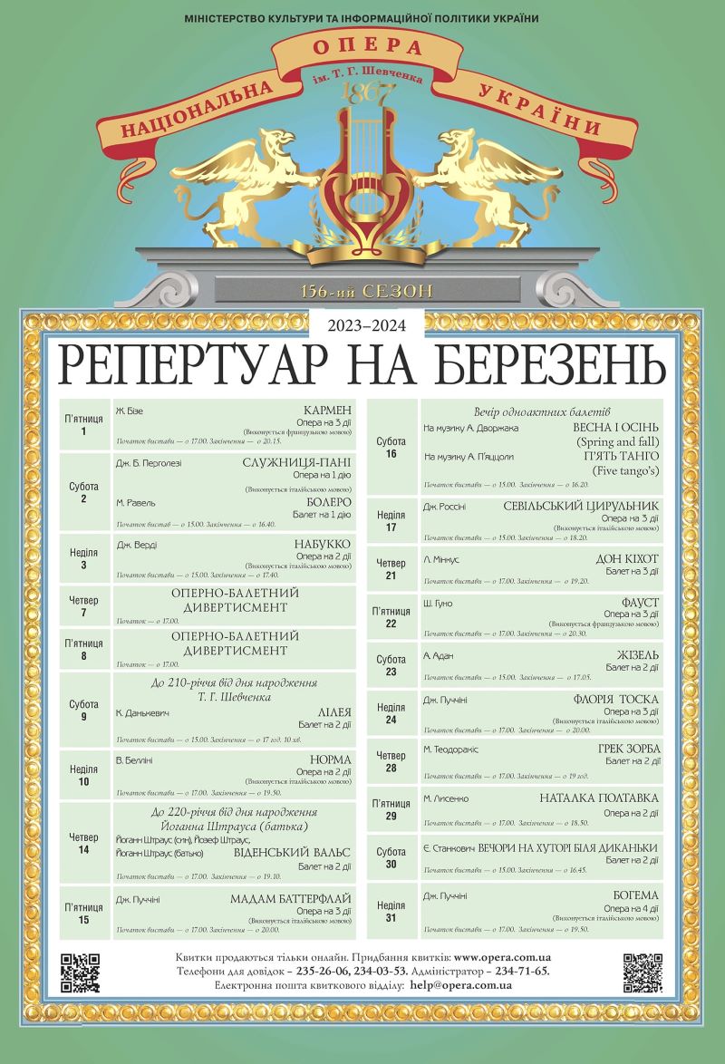 Репертуар Національної опери у березні